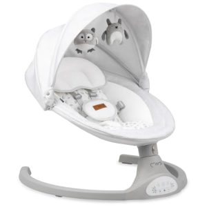 MoMi KENANI Transat balancelle jusqu’à 9 kg, pliable, télécommande et Bluetooth pour smartphone, alimentation piles et secteur, harnais de sécurité 5 points, pare-soleil, moustiquaire