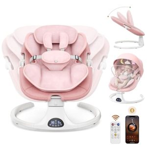 Transat Bebe Electrique, Balancelle Bebe Electrique avec Harnais à 5 Points, 5 Modes du Balancement, minuterie à 3 Niveaux, télécommande et Musique, utilisable en intérieur et en extérieur (Rose)