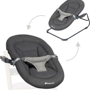 Bebeconfort Timba Baby, Transat 2-en-1, Naissance à 6 mois, 0-9 kg, Kit nouveau-né pour chaise haute bois Timba, 2 positions d’inclinaison, Siège molletonné, Harnais 3 points, Tinted Graphite