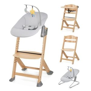 Kinderkraft ENOCK Chaise Haute Bébé + Transat CALMEE, en Bois Naturel, Chaise d’alimentation, Évolutive, Réglable, Puericulture Bébé, Très Solide, Design Universe