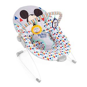 Bright Starts Disney Bébé MICKY MOUSE Transat Bébé Confortable Vibrations Apaisantes – Musique, Barre de Jouets Amovible, 0-6 Mois Jusqu’à 9 kg (Happy Triangles)